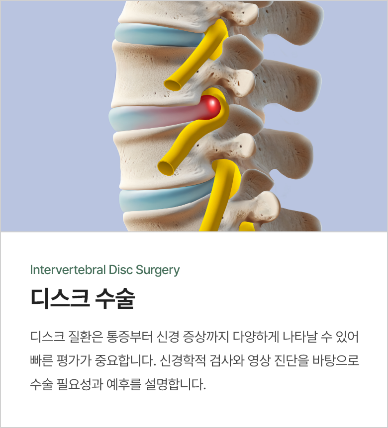 수술·치료 이후 통증과 회복 관리까지 안정적으로 제공합니다.