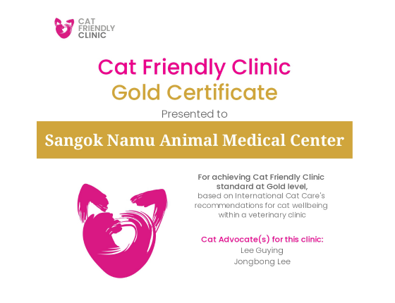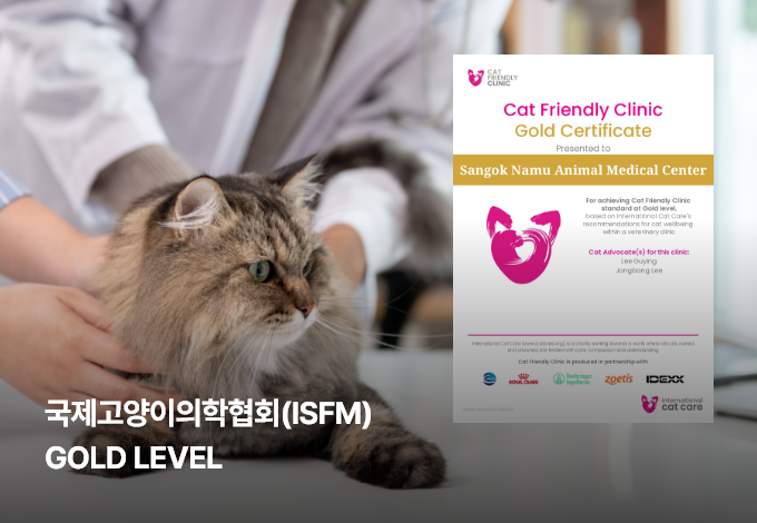 GOLD & FearFree 수의학 인증ISFM GOLD 기준에 부합하는 환경과 FearFree 접근으로
