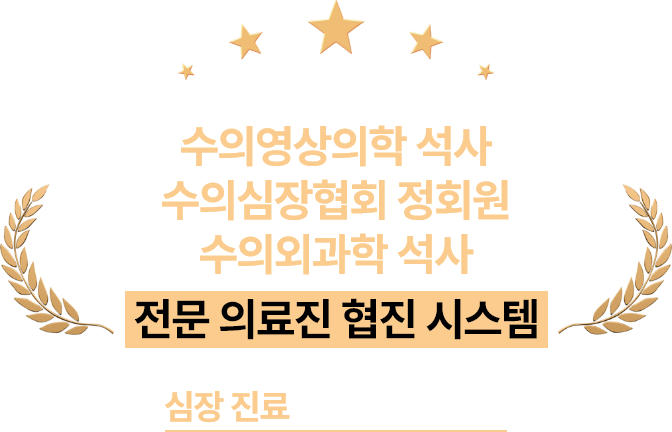 수의영상의학 석사 · 수의심장협회 정회원 · 수의외과학 석사 등